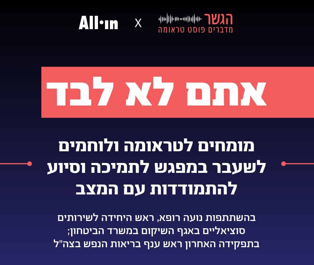 נועה רופא, ראש היחידה לשירותים סוציאליים באגף השיקום במשרד הביטחון, בתפקידה האחרון ראש ענף בריאות הנפש בצהל – על פעולות אגף השיקום למען נכי צה"ל ומתמודדי פוסט טראומה בימים מורכבים אלו. תגבור מוקד הסיוע, התנדבות לנכי צה"ל, בתים מאזנים. עם המסר החשוב, לא להישאר לבד, כל אחד יכול להיות מקור של תמיכה וסיוע עבור מי שזקוק, ביחד נעבור את זה.